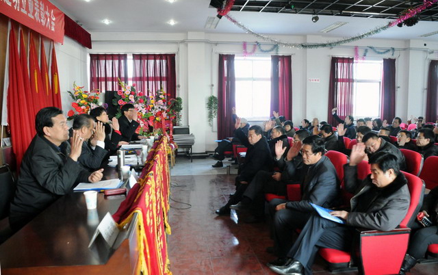 大會(huì)在莊嚴(yán)的國(guó)歌聲中拉開(kāi)了序幕,首先由集團(tuán)公司副總經(jīng)理要保林做《二零一零年度工作總結(jié)(草案)》,總會(huì)計(jì)師于廣志做《二零一零年度財(cái)務(wù)工作報(bào)告》,監(jiān)事會(huì)主席閆雙彥做《二零一零年度財(cái)務(wù)審核報(bào)告》,副總經(jīng)理谷進(jìn)寶做《二零一零年工作安排意見(jiàn)的報(bào)告(草案)》,工會(huì)主席黃春玲做《二零一零年度職代會(huì)工作總結(jié)及二零一一年度工作安排報(bào)告(草案)》。隨后全體與會(huì)代表對(duì)上述報(bào)告進(jìn)行舉手表決,均全票通過(guò)。會(huì)后,集團(tuán)公司董事長(zhǎng)兼黨委書(shū)記張?zhí)m柱同志做重要講話,總結(jié)了集團(tuán)公司在二零一零年工作中的經(jīng)驗(yàn)與不足,激勵(lì)廣大職工、股東代表在新的一年里為企業(yè)的快速發(fā)展繼續(xù)作好排頭兵、發(fā)揮表率作用,與廣大員工一起為集團(tuán)公司貢獻(xiàn)力量。