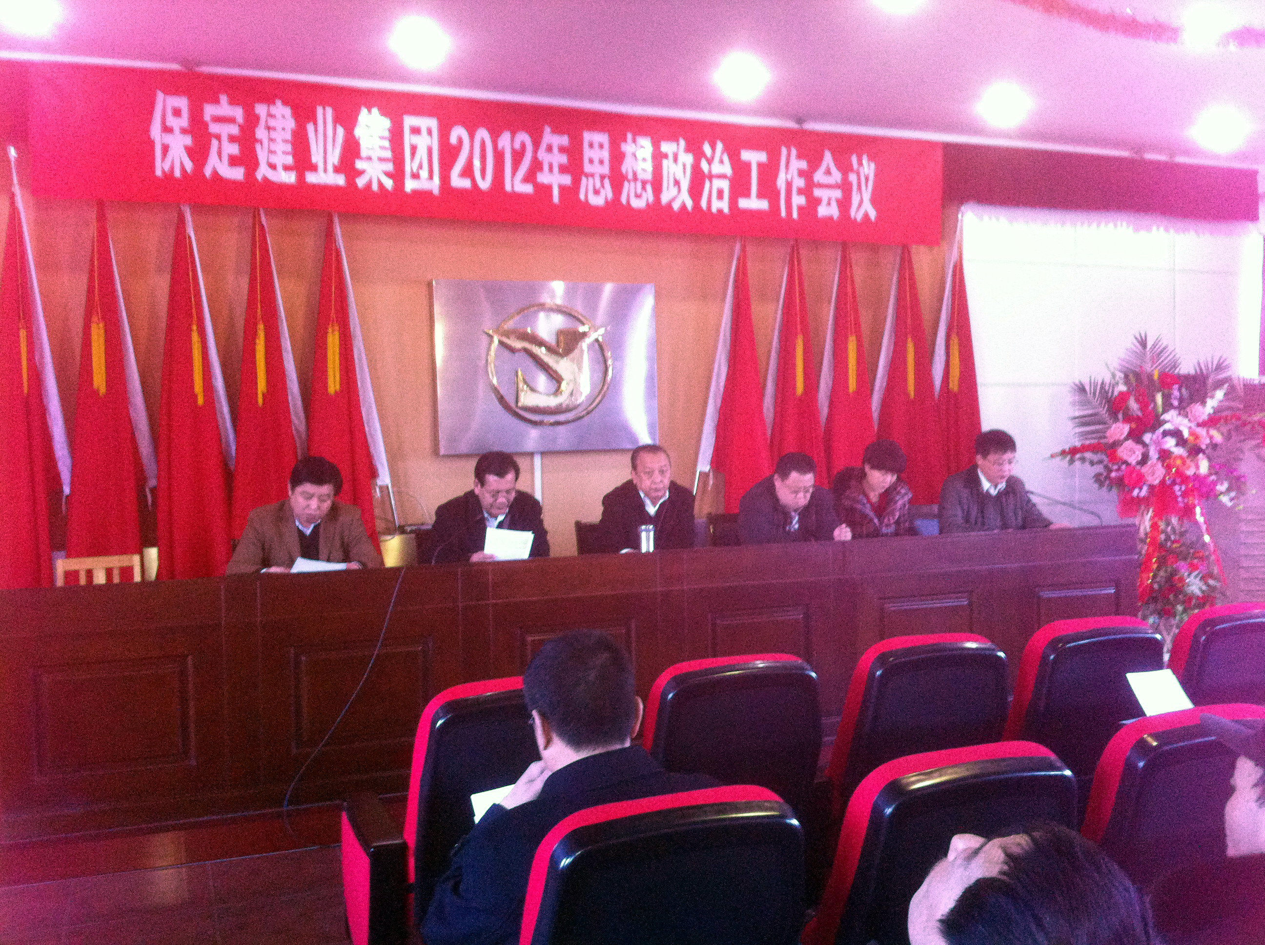 2012年3月14日,保定建業(yè)集團(tuán)有限公司2012年思想政治工作會(huì)議在莊嚴(yán)的國(guó)歌聲中拉開(kāi)了序幕,會(huì)議由黨委辦公室主任馬亞軍主持,集團(tuán)各公司黨、政、工、團(tuán)、婦、武裝、保衛(wèi)負(fù)責(zé)人參加會(huì)議。