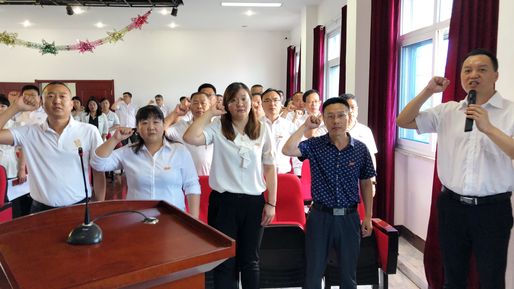 集團(tuán)黨委委員張軍輝帶領(lǐng)新黨員入黨宣誓,與會黨員一起重溫了入黨誓詞。莊嚴(yán)的宣誓聲,響徹耳畔、銘記于心。