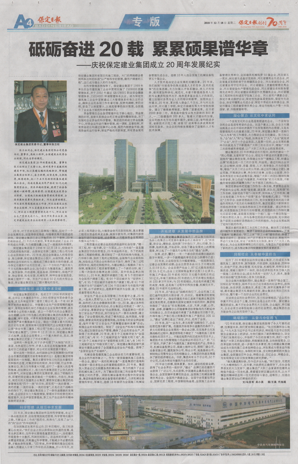 保定日報專版報道集團公司成立二十周年